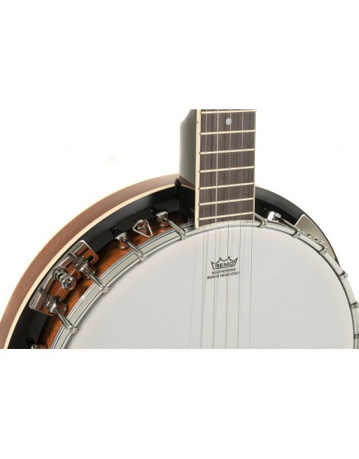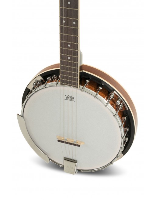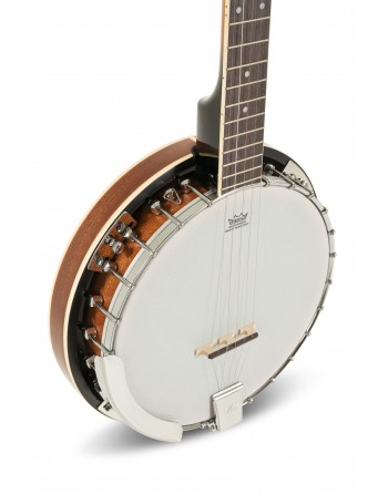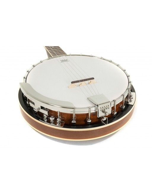 Le modèle idéal pour débutant: Corps en acajou (Ø 33 cm) avec 1 barre de coordination, un manche en acajou réglable, une peau orig.REMO Weatherking ( diamètre 29 cm) et accastillage chromé. Caractéristique importante: tous les modèles sont équipés de mécaniques de guitare, pour faciliter l'accordage aux débutants. Tous les banjos sont livrés avec étui..