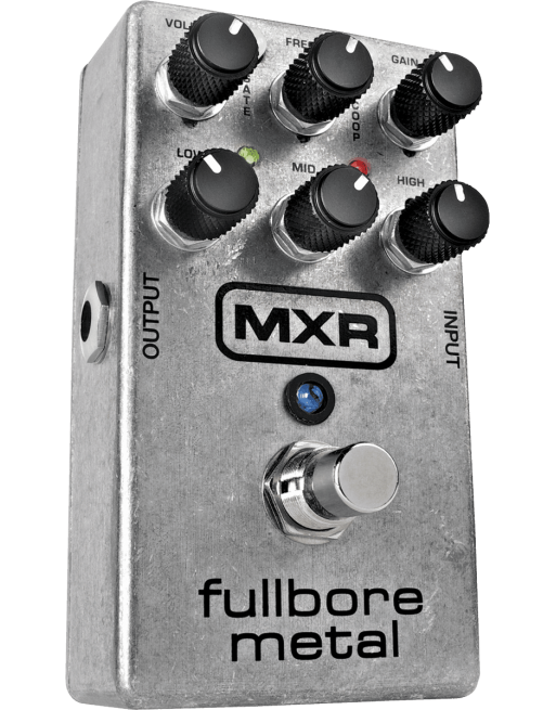 - Réglages : volume, gain, médium, treble, bass, mid freq