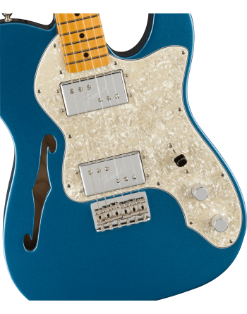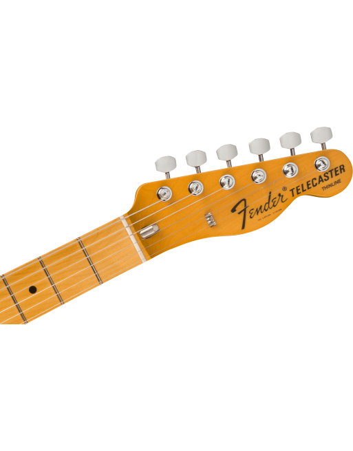 La série Fender American Vintage II fait revivre avec une fidélité exceptionnelle les modèles qui ont révolutionné l’histoire de la guitare électrique. L’American Vintage II 1972 Telecaster® Thinline reprend le design semi-hollow emblématique et les célèbres humbuckers Wide Range, recréés avec aimants CuNiFe pour un son authentique et puissant. Son manche érable profil “C”, sa touche 7,25” et ses caractéristiques d’époque Micro-Tilt™, écrou Bullet et chevalet 6 pontets offrent un toucher et des sensations résolument vintage. Héritière directe des modèles originaux, elle incarne l’expression la plus pure du savoir-faire Fender pour les passionnés en quête d’authenticité.
