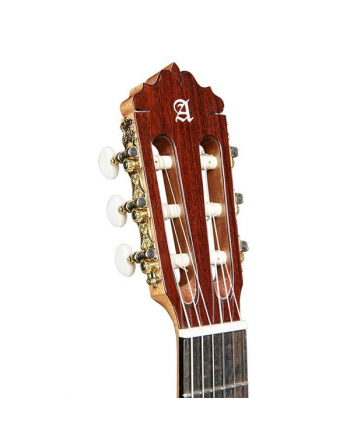 Découvrez la liberté d'expression musicale avec une guitare conçue pour élever votre créativité vers de nouveaux sommets. Avec son dos et ses éclisses en olivier à croissance lente et aux racines profondes, cette guitare est non seulement un chef-d'œuvre sonore, mais aussi un véritable plaisir visuel. Profitez d'un jeu confortable et d'un manche ergonomique en bois de Samanguila, pour une expérience de jeu fluide et agréable. Le renfort intérieur en ébène assure une durabilité sans compromettre la résonance.