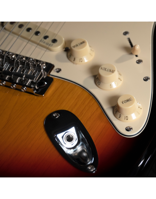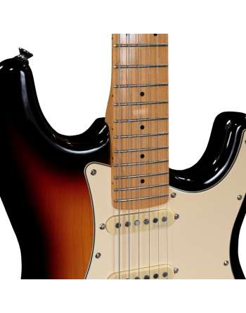 Dans la plus pure tradition des guitares Solid Body, ce modèle associe tilleul sélectionné, manche érable vernis vintage et radius 9,5’’ identique aux standards américains pour un confort et une jouabilité premium. Équipée de trois micros ALNICO® V, de cordes SAVAREZ® et de barillets en acier, elle offre sustain, dynamique et une polyvalence sonore exceptionnelle. Sa configuration triple simple bobinage garantit une palette de sons riche et précise, adaptée à tous les styles.