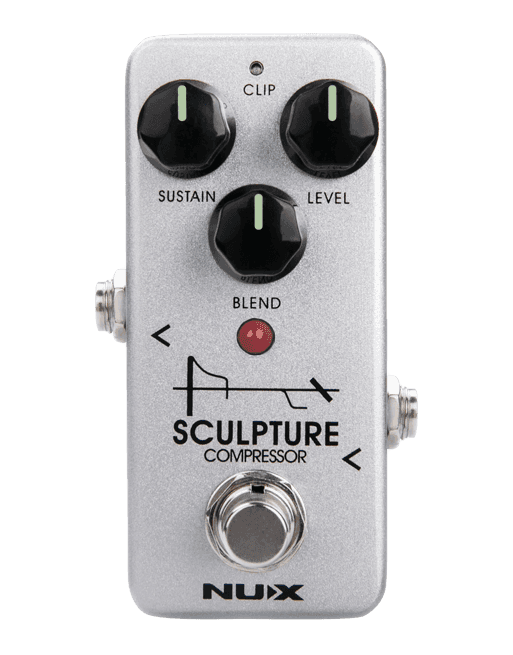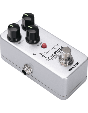 L’effet de compression est souvent opaque et mal compris des guitaristes, mais c’est pourtant une arme secrète très inspirante pour ajouter du claquant et du sustain à votre son ! Un compresseur « nettoie » les notes fortes (crêtes) et augmente le niveau des notes plus silencieuses, harmonisant les écarts de dynamique pour faire ressortir toutes les notes jouées. La mini pédale Nux Sculpture compressor est très compacte mais offre des fonctionnalités étendues pour un compresseur de son gabarit. Les trois potentiomètres contrôlent le sustain (compression), le level (volume du signal compressé) et le blend (mix entre votre signal pur et le signal compressé)