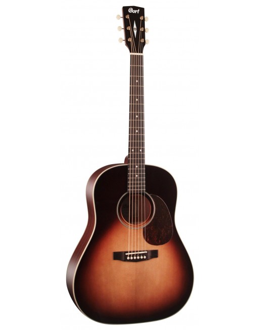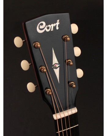 Earth 100SS, modèle Slope Shoulder, table épicéa Sitka massif, fond & éclisses acajou, manche acajou, touche ovangkol, 20 frettes, sillet 43 mm, diapason 24.75" (628 mm), sillets en os, mécaniques vintage, cordes D'Addario EXP1