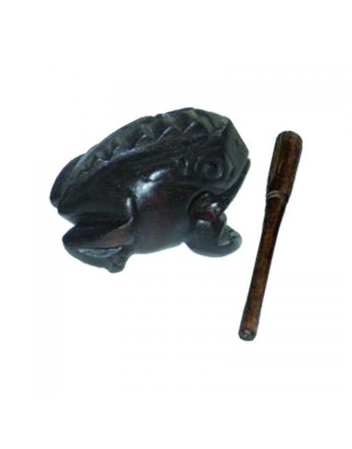 A l'aide de sa batte en bois (livrée avec l'instrument), frottez son dos pour obtenir le coassement de la grenouille (ou le son d'un petit güiro) ou frappez sa tête pour en faire un parfait woodblock (proche du son d'une clave creuse).