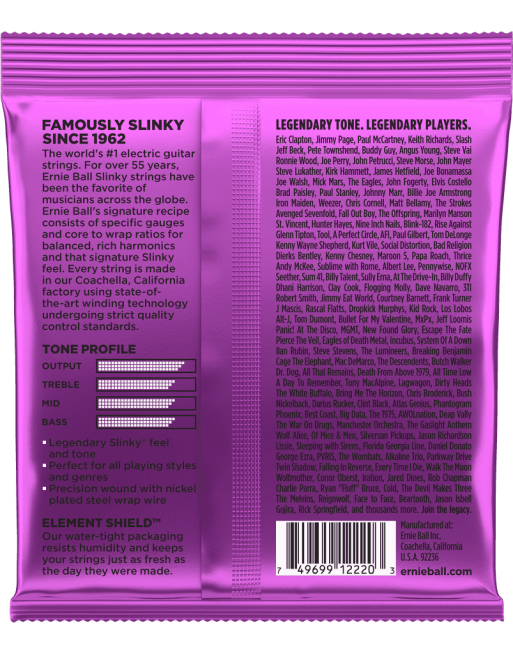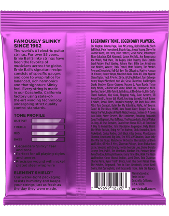 LE jeu de cordes incontournable. Adopté par Eric Clapton, Jimmy Page, Slash, Angus Young et une légion de légendes ! Ces cordes sont fabriquées en respectant un cahier des charges très strict propre à Ernie Ball qui garantit une performance optimale. L'âme hexagonale accueille un fil de nickel pour une durée de vie accrue.