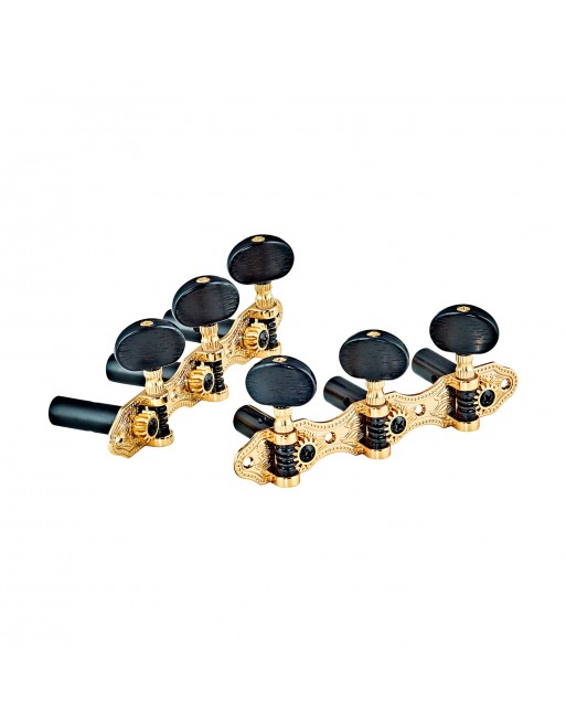 Jeu de mécaniques pour guitare classique série Deluxe, ratio 14:1, plaques dorées, boutons noirs style ébène