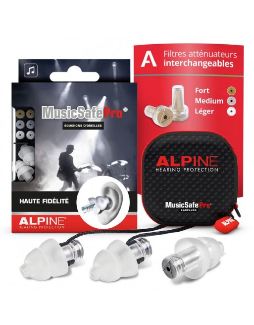 Prévient les lésions auditives et bourdonnements dans l’oreille par la musique forte Avec trois paires de filtres à fidélité élevée : Or (22 dB), Argent (19 dB) et Blanc (16 dB) Avec système unique de filtres échangeables : déterminez votre propre atténuation Qualité de son sublime, son à 100% Fabriqué en matériau high-tech AlpineThermoShape™ Excellente forme, portée avec plaisir pendant des heures Y compris étui de rangement, cordon tour de cou, spray de nettoyage et bouchon d’oreille de réserve. Réutilisable et facile à mettre et à enlever « The No1 Earplug » pour les amateurs de musique et professionnels dans plus de 50 pays
