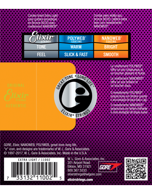 L'alliage 80% de cuivre et 20% de zinc confère à ces cordes un son très brillant et claquant qui ne s'altère pas avec le temps.