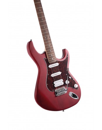 G110, corps peuplier, manche érable, touche jatoba (radius 9.45"), 22 frettes, sillet 42 mm, 2 micros simples et 1 double Powersound, 1 volume, 1 tonalité, sélecteur 5 positions, vibrato vintage 6 vis, mécaniques bain d'huile, accastillage chromé, plaque tortoise.