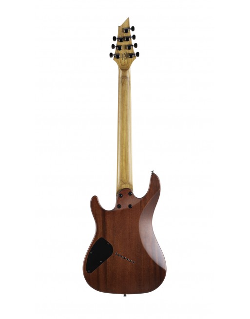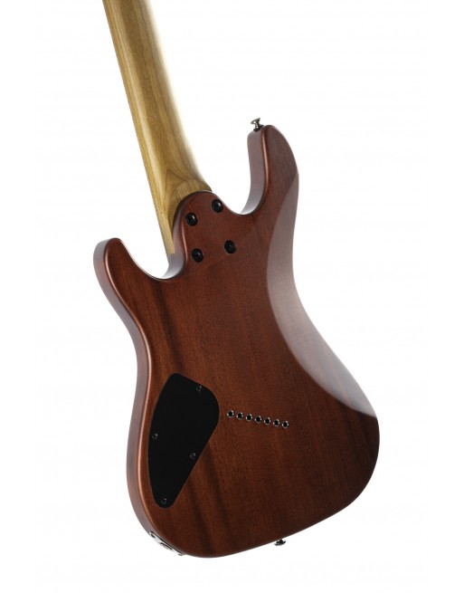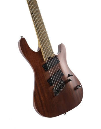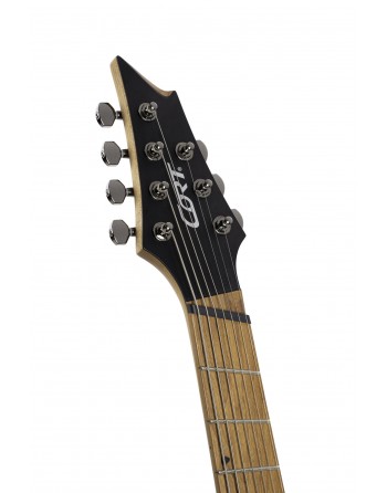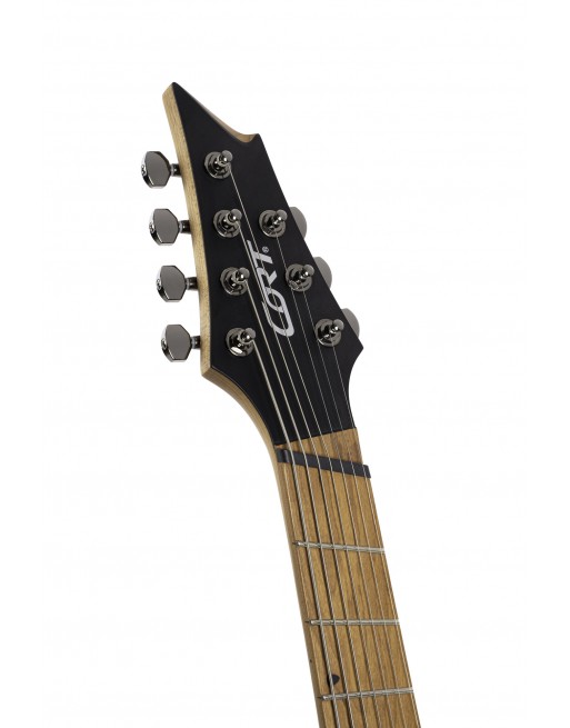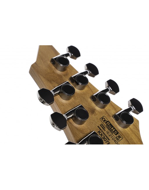 KX307MS, modèle 7 cordes, corps acajou, manche érable torréfié, touche érable torréfié, 24 frettes en éventail, pontets individuels avec cordes traversantes, 2 micros doubles passifs PowerBar, 1 volume, 1 tonalité, sélecteur 3 positions, mécaniques à blocage étagées, accastillage noir nickel, cordes D'Addario EXL 110 + NW059.
