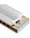 - Harmonica diatonique - Tonalité Sol (G) - Sommier en plastique métallisé - Plaques en laiton de 1,05 millimètre - 20 anches MS - Capots chromé en acier inoxydable, sans ouvertures latérales - Signature Jean Jacques Milteau