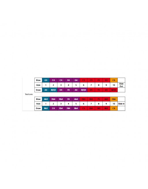 - Harmonica chromatique - 10 trous - Sommier en plastique - Tonalité de Do - 40 lames - Accord Tempéré - Dimensions 14 cm - Livré dans un étui en plastique noir
