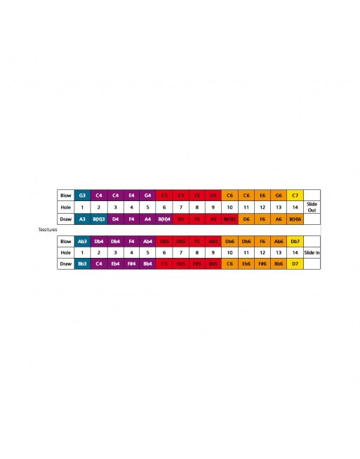 - Harmonica chromatique - 14 trous - Sommier en plastique - Tonalité de Do - 56 lames - Accord Tempéré - Dimensions 19,1 cm - Livré dans un étui en plastique noir