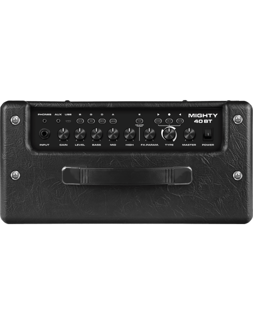 Le Mighty 40 BT est un amplificateur à modélisation compact parfait pour travailler vos morceaux préférés à domicile. Ses 20 watts, portés par un haut-parleur de 10 pouces, sont adaptés au travail à la maison et permettent même d'attaquer de petites répétitions ou petits concerts sans souci. La sortie casque au format mini-jack vous autorise à travailler votre instrument dans le silence le plus complet. Son interface très complète présente 4 canaux -Clean, Overdrive, Metal, Lead- offrant chacun 2 presets, démultipliant les possibilités de création offertes aux musiciens en mettant à leur disposition une large palette de sonorités. Avec ses 8 amplis modélisés, ses 3 types d'effets de modulation et ses 3 modèles de reverbe et délai, vous ne serez jamais à court de possibilités. L'interface conviviale du Mighty 20 BT permet de contrôler, de sauvegarder et de rappeler l'ensemble des paramètres de l'amplificateur et des effets en un clin d'oeil. Ampli ultra connecté, le Mighty 40 BT dispose d'une connexion Bluetooth pour interagir avec l'application Mighty App, disponible gratuitement sur les smartphones Android et iOS, permettant de diffuser directement de la musique à partir de votre smartphone et de contrôler l'ensemble des paramètres de l'amplificateur du bout des doigts.