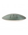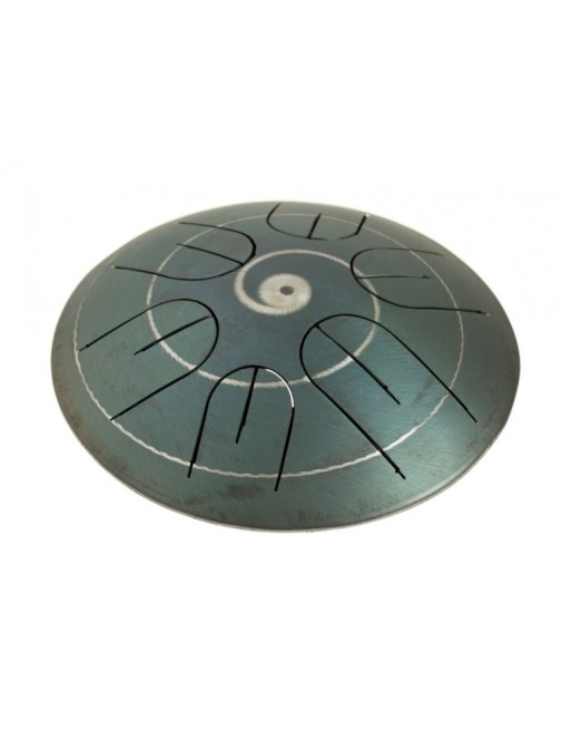 Cette percussion mélodique de la famille du tongue drum (aussi appelé hank drum et tank drum) peut être jouée avec les mains ou en utilisant des baguettes en caoutchouc souple ; se joue placé sur les cuisses ou sur un support matelassé.