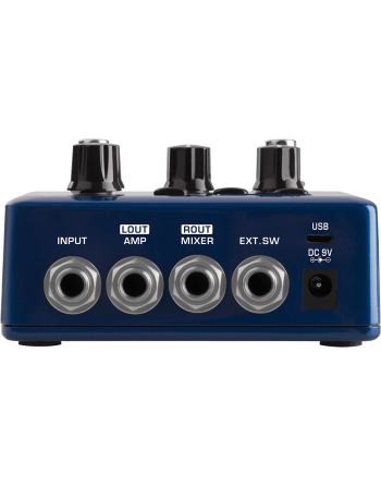 Pour régler l'équilibre entre votre boucle et la boîte à rythmes, la JTC présente deux potentiomètres en façade permettant de régler le niveau de chaque partie. Elle offre également trois modes d'arrêt de lecture, allant de l'arrêt instantané au fondu tout en douceur, et deux modes de démarrage : à l'appui sur le commutateur, ou par captation d'un signal d'entrée pour faciliter le démarrage en gardant un appui long sur le commutateur. Côté sorties, la JTC n'est pas en reste avec une paire de sortie stéréo au format jack, la gauche étant dédiée au niveau amplificateur, la droite pour les tables de mixage avec une émulation d'enceinte intégrée.