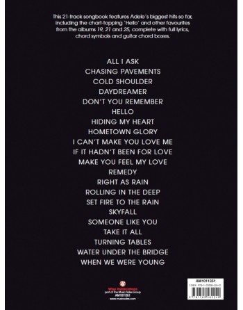 This Best Of Adele songbook features 21 of the British singer's biggest songs so far, arranged for Piano, Voice and Guitar with full lyrics, chord symbols and Guitar chord boxes. Including the greatest hitsfromall three of her albums, as well as the chart-topping Hello, plus a brief introduction to each album, this is the definitive Adele sheet music songbook.
