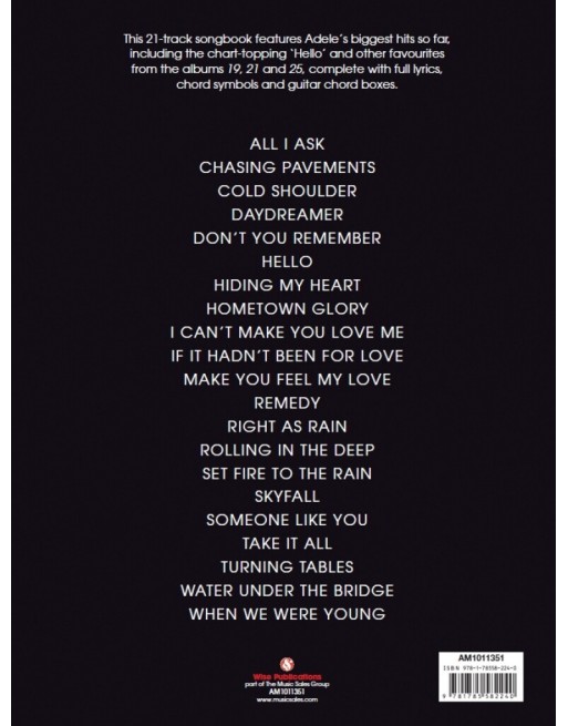 Arranged for Piano, Vocal and Guitar, this songbook willlet youlearn to play Adele with full lyrics, chord symbols and Guitar chord boxes. Not only this, the beginning of the book features a brief introduction to each album, making The Best Of Adele theperfectsongbook for Adele fans.