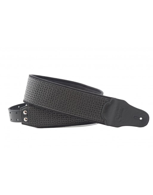 Courroie modèle B-BOND, extérieur synthétique, doublure microfibres, extrémités 100% synthétique, rembourrage haute densité, largeur 8 cm, longueur 98 à 153 cm, porte-médiators intégré.