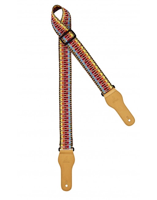 Courroie guitare, 100% coton, extrémités simili cuir, largeur 4.9 cm, longueur jusqu'à 158 cm.
