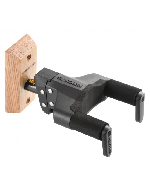 Support mural de face avec nouveau système AGS (accepte les largeurs de manche de 40 à 52 mm, guitares classiques comprises), système NINA (permet de s'adapter à des manches plus fins type banjos ou mandolines), fixation 2 vis sur embase bois naturel, longueur du bras: 10.5 cm, charge supportée: 7 kg.