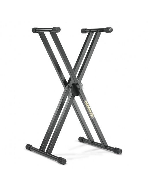 Support simple clavier en double X, système EZ-LOK 5 niveaux et tubes acier 25.4 mm (hauteurs: 53, 68.6, 81.3, 91.4 et 99 cm, poids: 5.4 kg, charge supportée: 100 kg, largeur support: 34 cm)