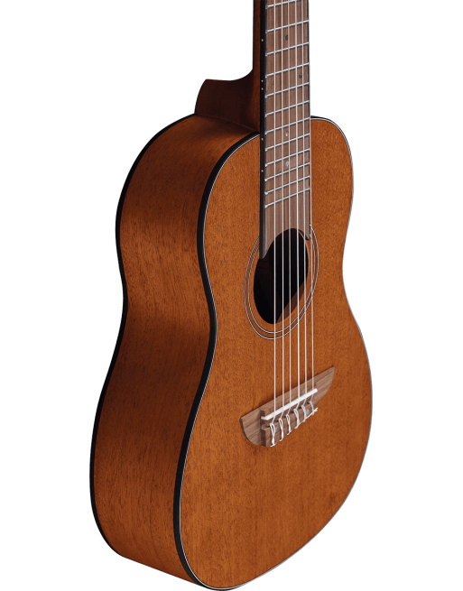 Cet instrument est parfait comme instrument de voyage, ou pour initier les enfants à la musique. Le Guitalélé Duo est conçu avec la table, le dos et les éclisses en acajou. Le manche est en okoumé et la touche et le chevalet en roupanà sud américain. Sa finition acajou naturelle est satinée et laisse en évidence les pores du bois pour un look élégant. Livré avec une housse de transport en nylon.
